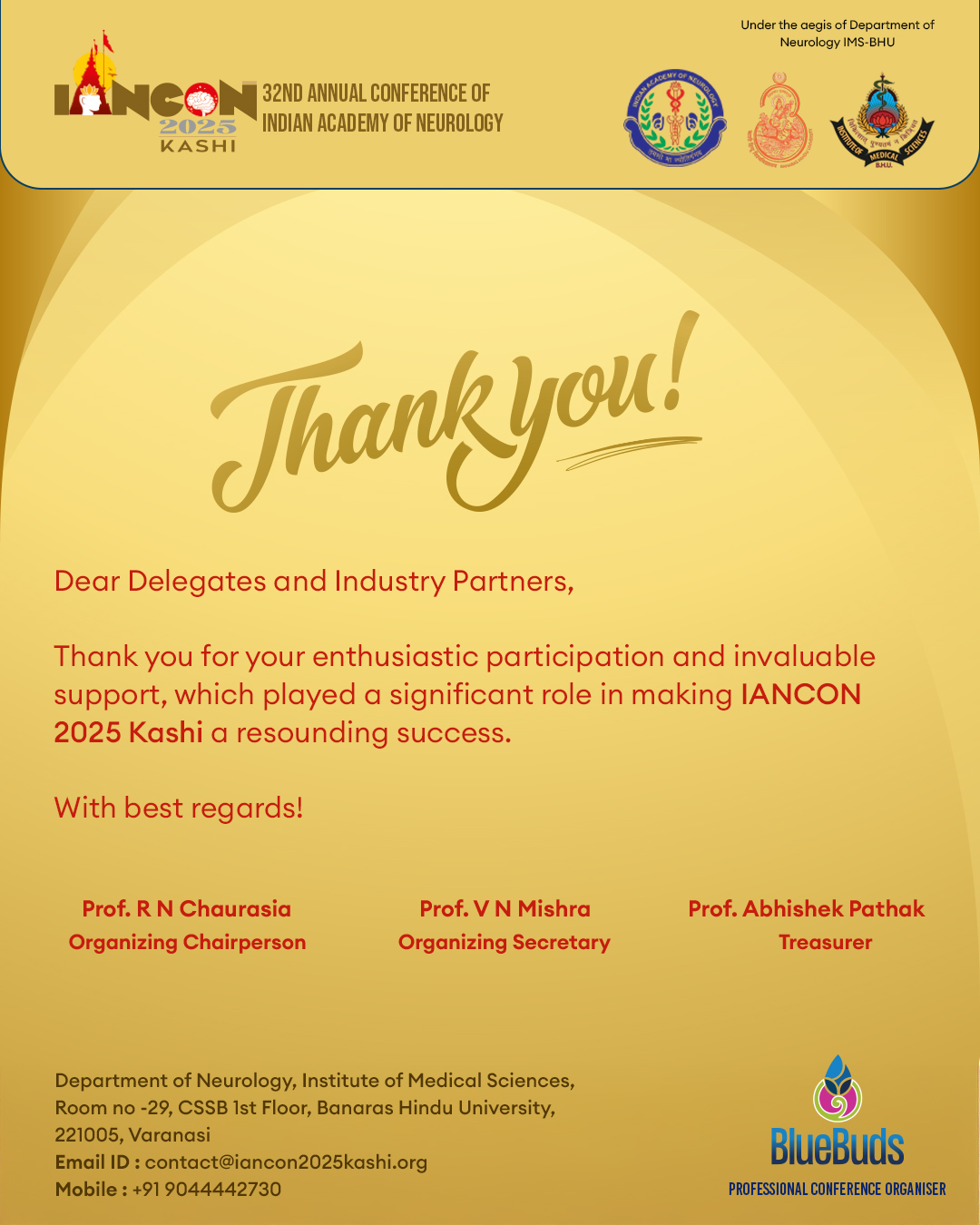 At this significant event, let us unite in Kashi (Varanasi) to embrace the spirit of inquiry, discovery, and friendship. In addition to improving the conference, your active participation will progress patient care and neurology.